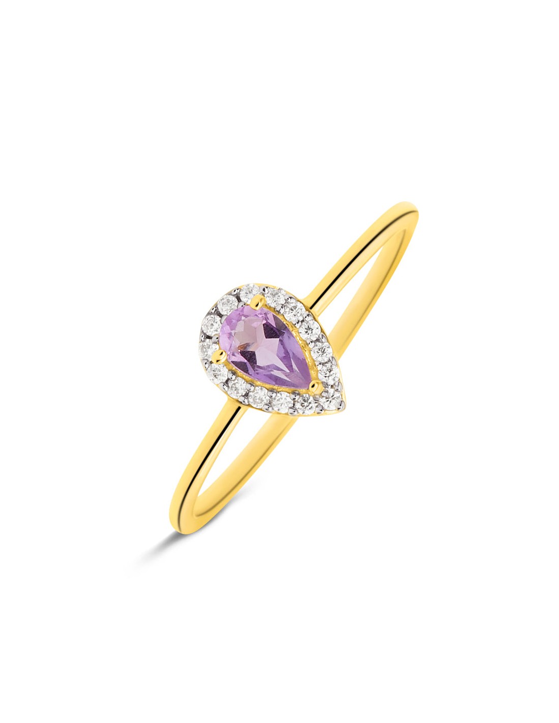 Anello Stroili Oro giallo con Ametista centrale e zirconi