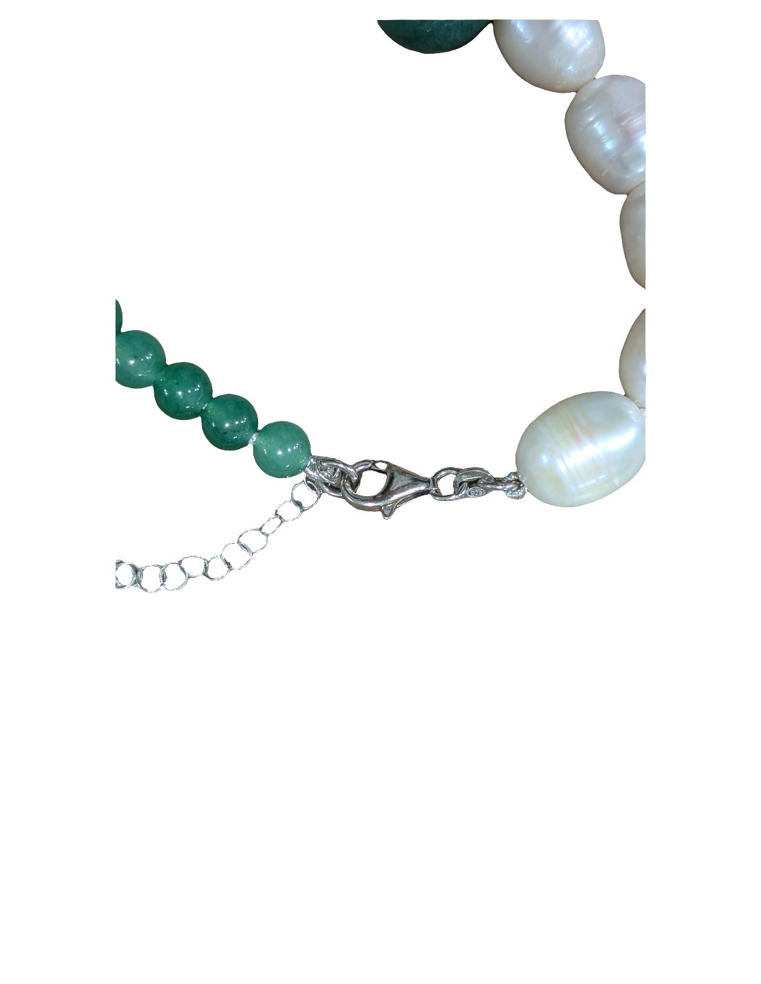 Bracciale in Perle di Acqua Dolce e Pietre Dure con Chiusura in Argento - Artigianato Italiano