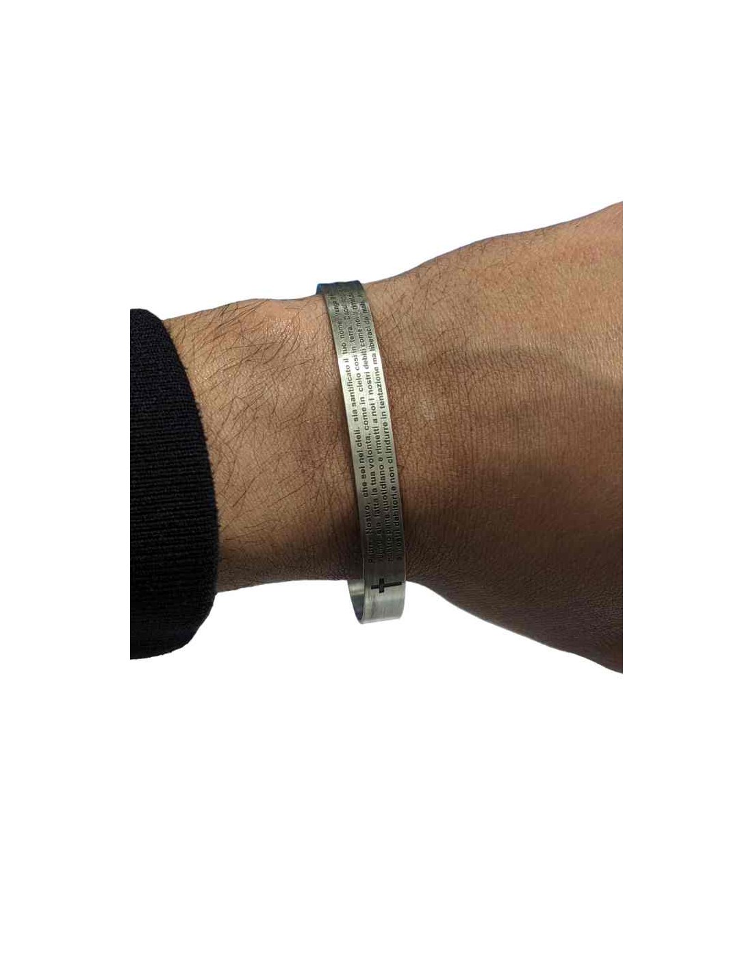 Simbolo di fede e design elegante: questo bracciale cattolico in argento 925, con incisione a laser del 'Padre nostro', è un capolavoro di gioielleria religiosa.