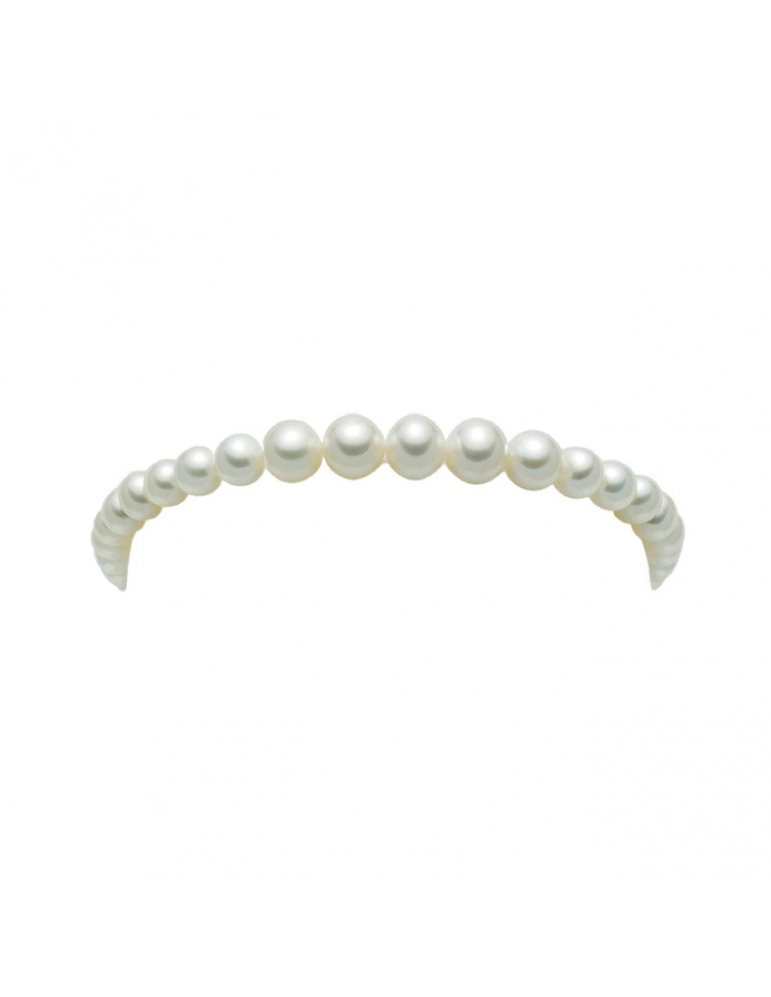 Bracciale in Perle d'acqua dolce Miluna, le perle el bracciale sono a grandezza scalare ovvero centralmente abbiamo le perle più grandi, andando verso l'esterno le perle diminuiscono di grandezza così da creare un effetto scalare. Chiusura e terminale in Oro Bianco, Perle d'acqua dolce selezionate.Il bracciale è classico, fine ed elegante, adatto a molte occasioni formal e informali.