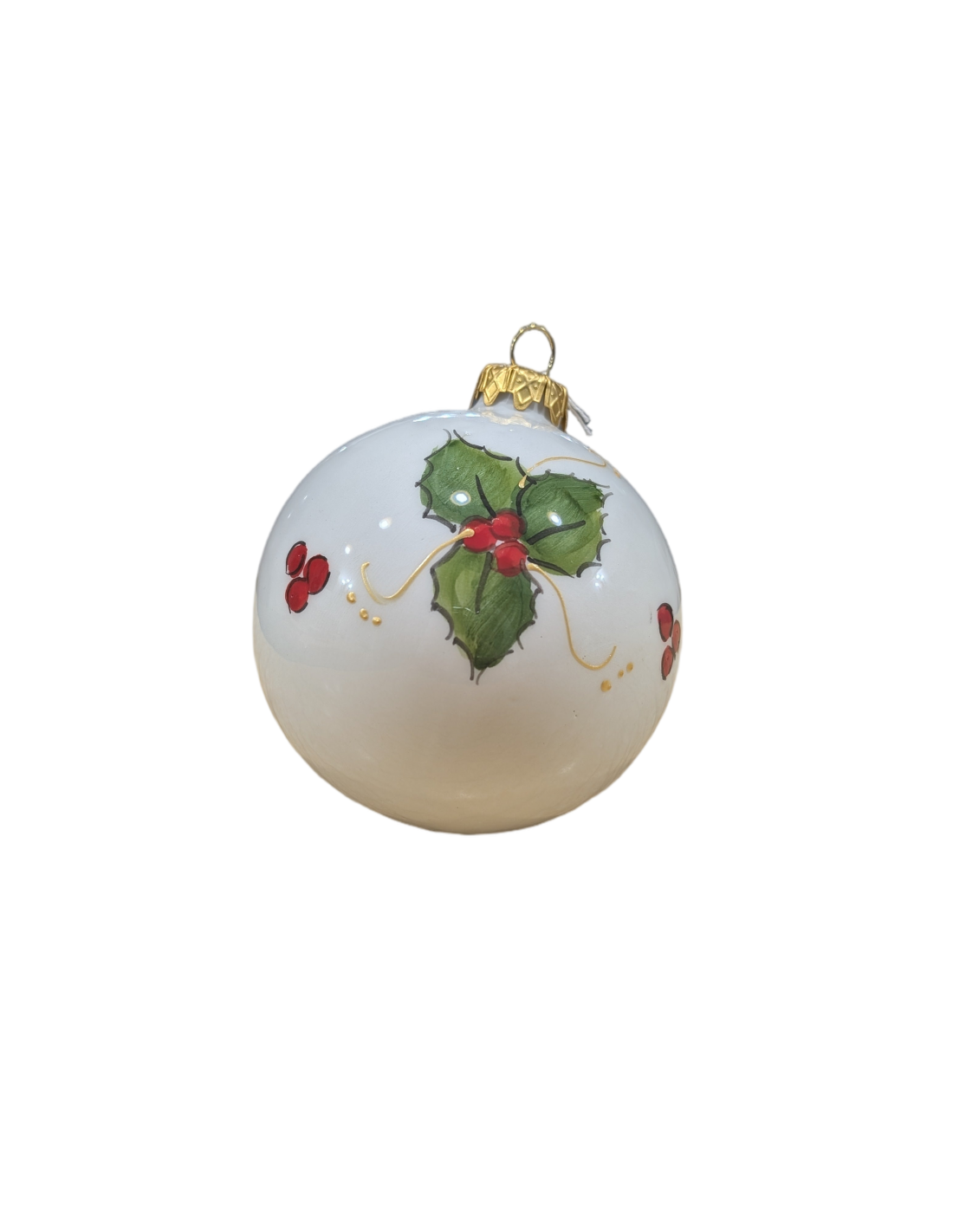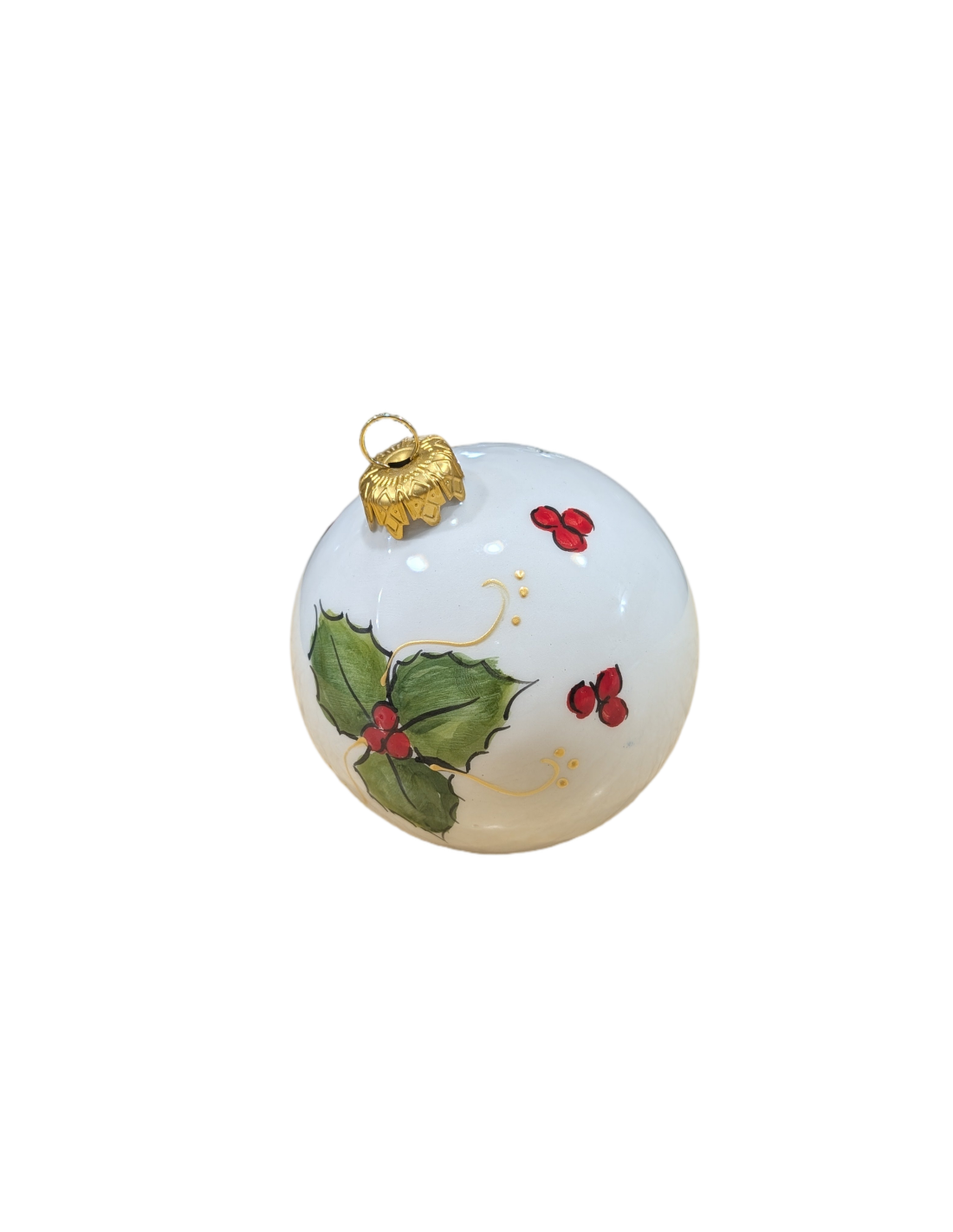 Aggiungi un tocco di eleganza artigianale al tuo albero di Natale con questa pallina in porcellana di Capodimonte, realizzata in Italia e dipinta a mano con dettagli raffinati, in questo caso sono raffigurati degli Agrifogli con decori.