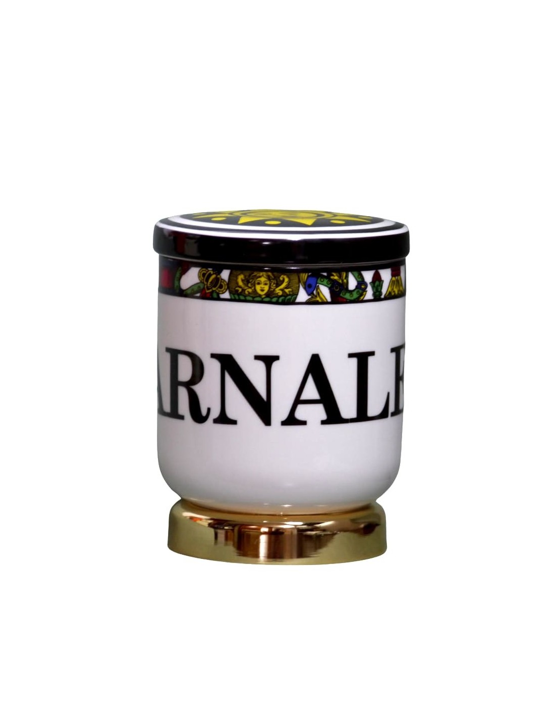 Il design si rifà alla tradizione napoletana, dalle carte ai numeri, raffigurando i semi delle carte da gioco usate a Napoli. Una volta esaurita la candela interna, questo oggetto diventa un pratico soprammobile oppure un porta ingredienti da cucina (sale, pepe, spezie, caffè, ecc.) grazie alla membrana ermetica sotto al coperchio. Sul tappo visibile sono raffigurati i 'Denari' e lateralmente la scritta 'Carnale'.