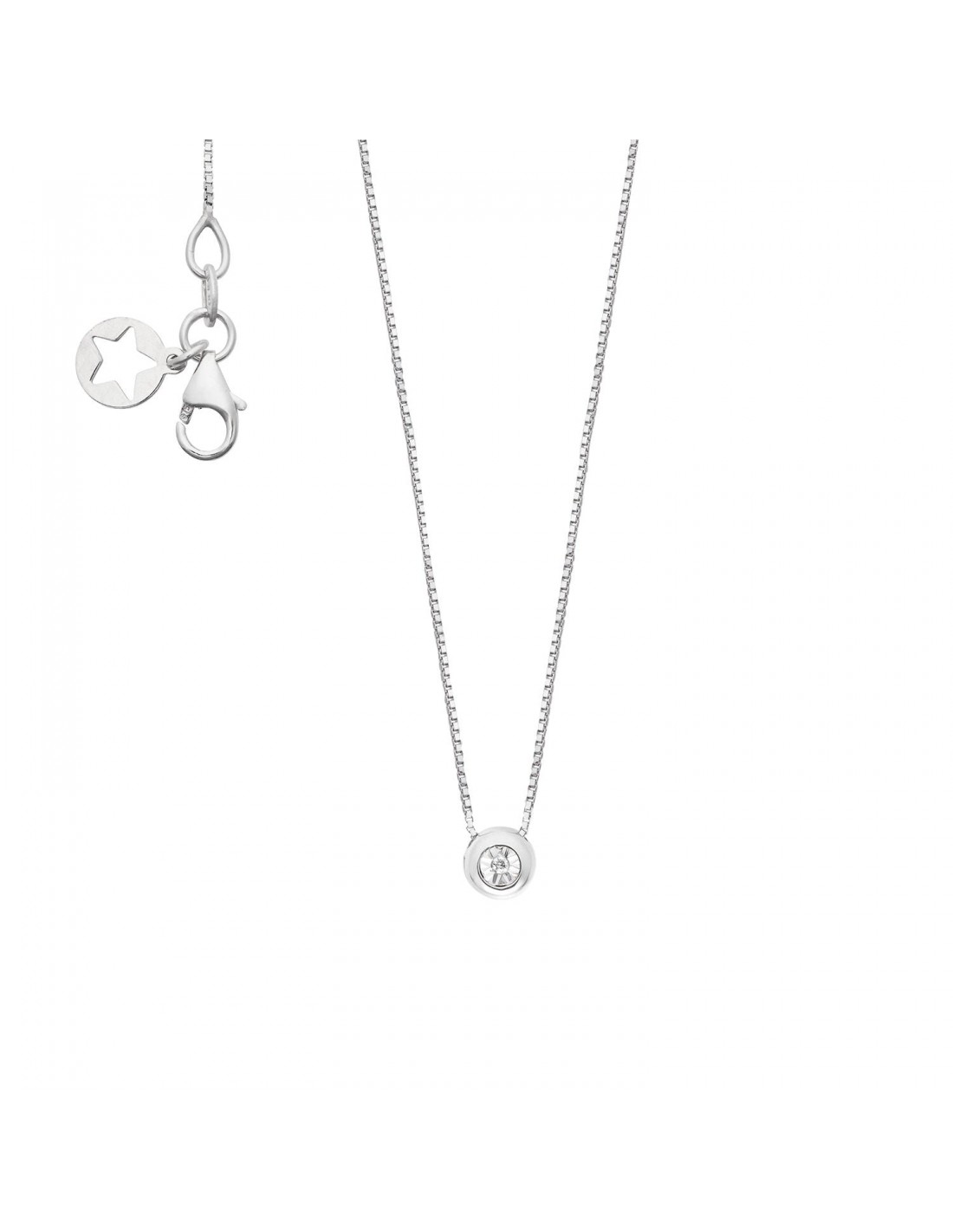 Scopri l'eleganza senza tempo del girocollo Comete Punto Luce in oro bianco 375‰. Un gioiello raffinato che esalta la bellezza di ogni outfit grazie al suo diamante bianco da 0,75 carati, impreziosito da un perfetto taglio e purezza SI.