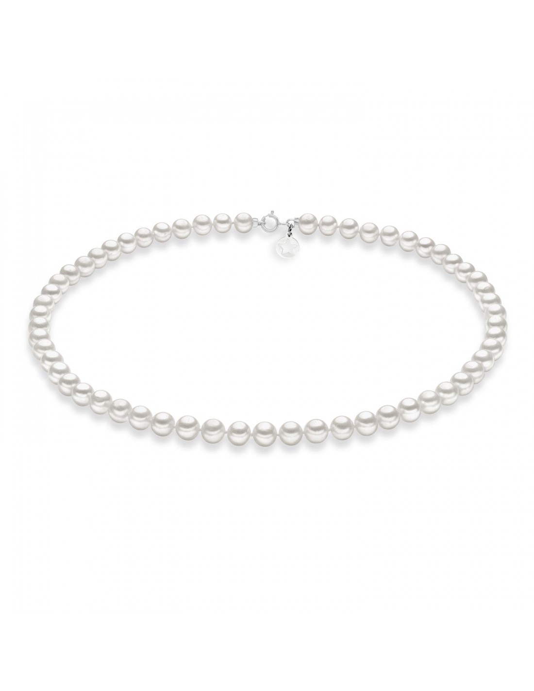 Scopri l'eleganza senza tempo con la Collana Comete Perle in oro bianco 750‰, arricchita da perle coltivate di diametro 4,5/5 mm.