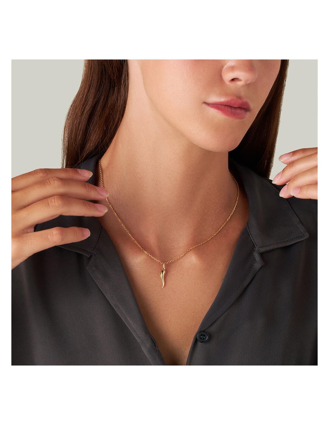Scopri il Pendente Cornetto Stroili Portafortuna in Oro Giallo 9kt, un simbolo di eleganza e tradizione. Questo raffinato ciondolo è realizzato in pregiato oro giallo e presenta un design classico a forma di cornetto, noto per le sue proprietà portafortuna.