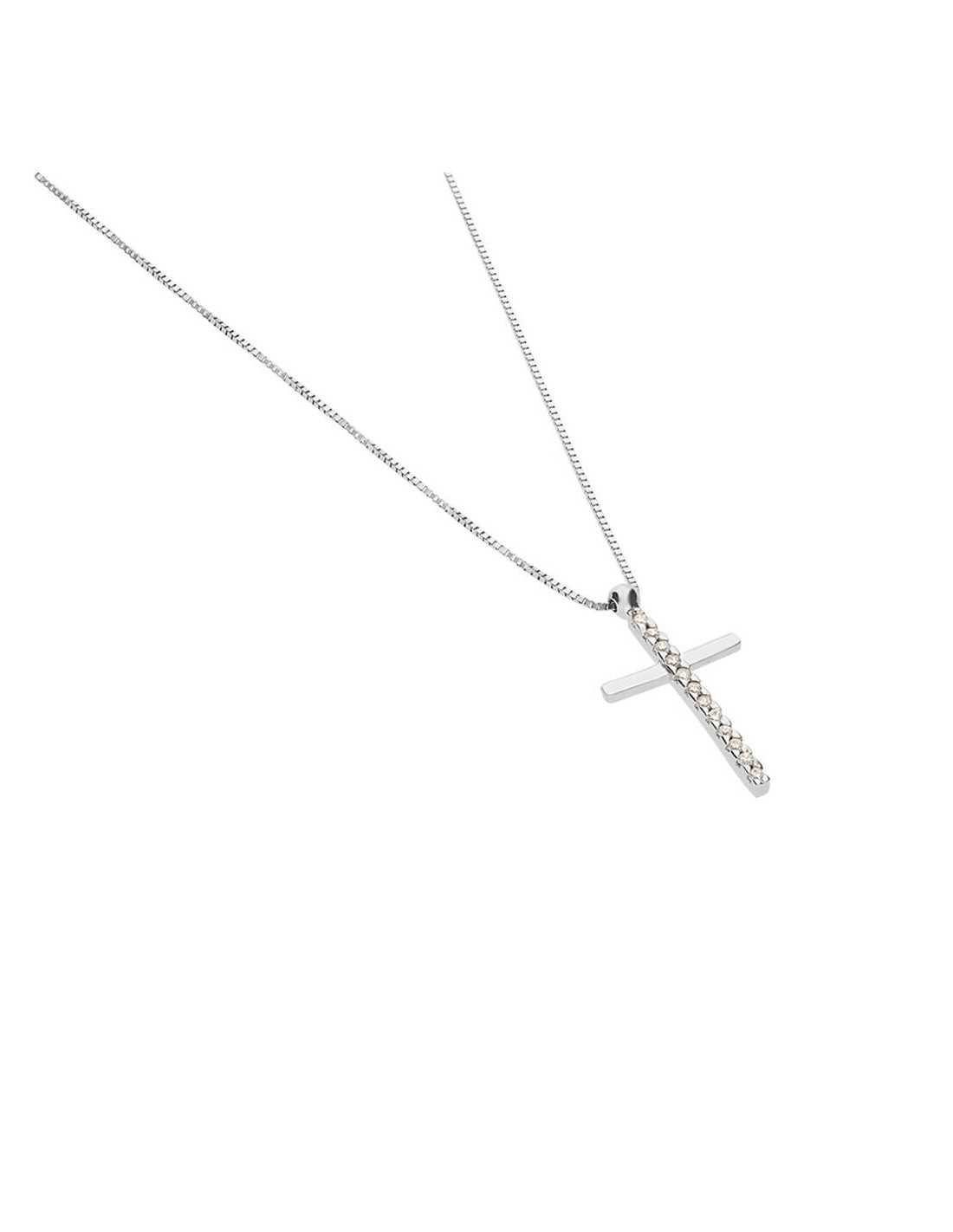 Collana Stroili con Croce Oro Bianco e Cubic Zirconia