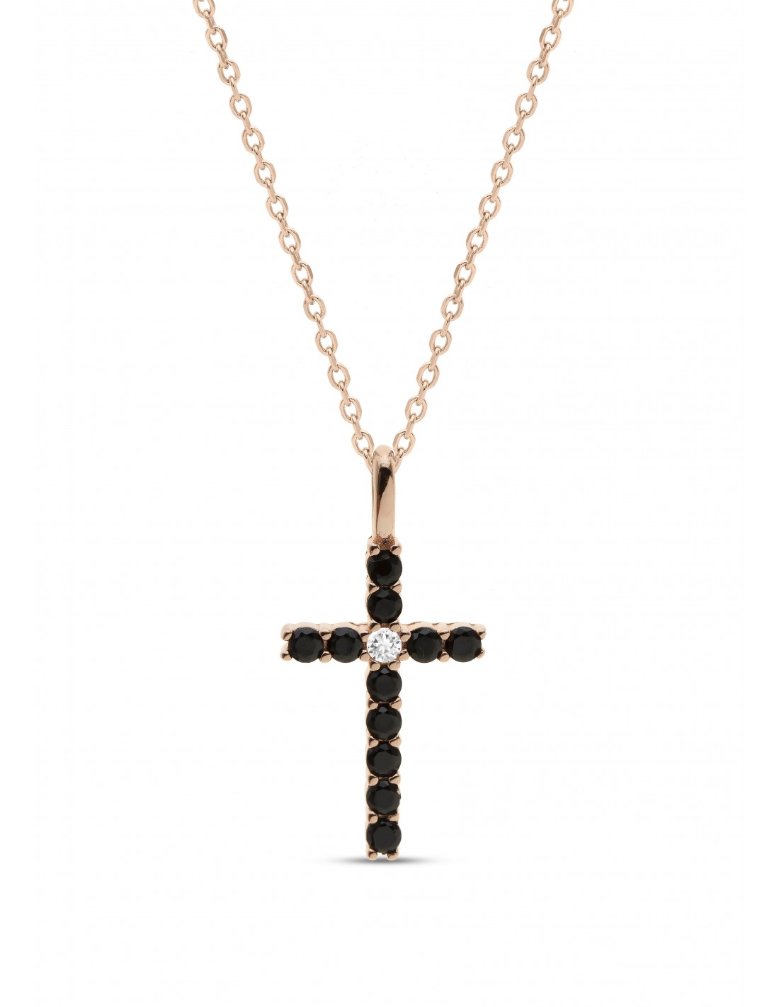 | Tipo di prodotto: | Collana con Croce cristalli neri in argento rosè |