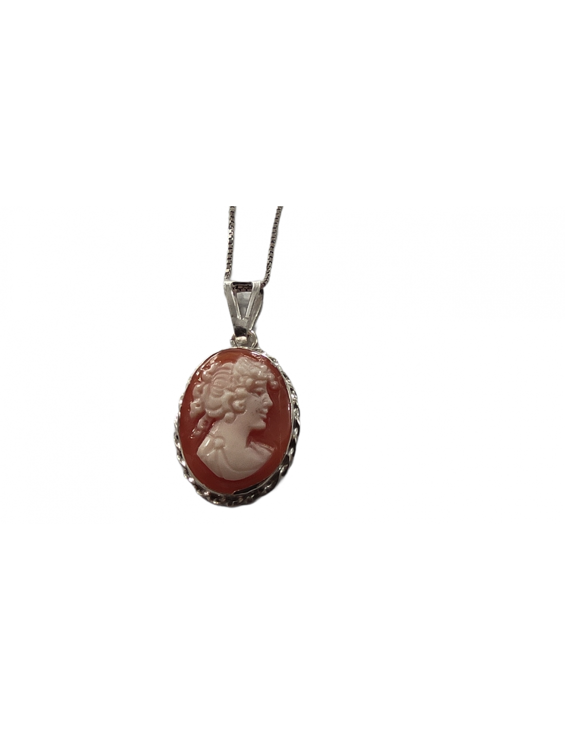 Pendente Cammeo Inciso su Conchiglia Corniola con Catenina in Argento