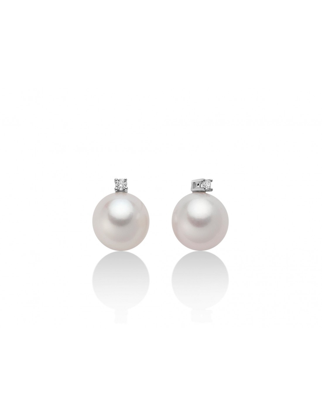 Orecchini in oro bianco con Diamanti incastonati nella parte superiore ed al centro una perla. Chiusure a farfallina pratica per indossare gli orecchini semplicemente.