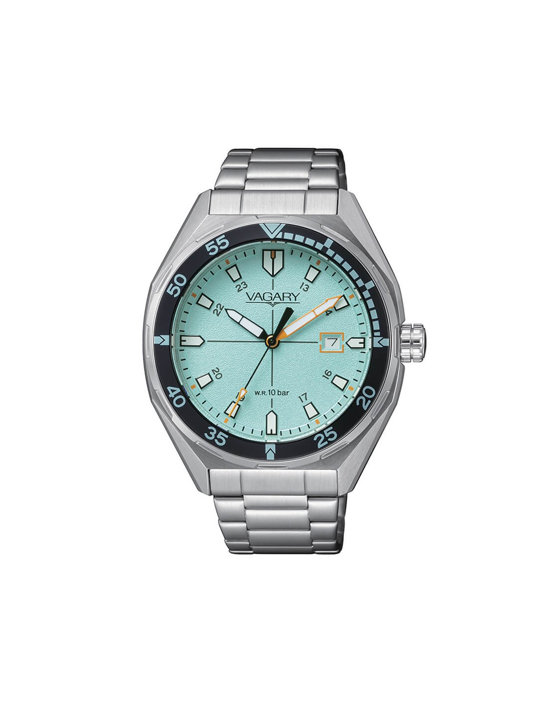 Resistenza all'acqua fino a 10 bar rende l'Orologio Vagary IB9-417-73 adatto per affrontare le avventure quotidiane, dalla riunione d'affari all'escursione all'aperto. Il sofisticato quadrante color turchese è impreziosito da indici e lancette ben visibili, mentre il vetro minerale offre protezione contro graffi e urti.