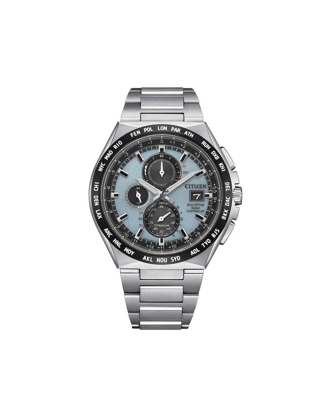 Il design regolabile e costruito in titanio rende l'orologio robusto ma leggero, perfetto per un comfort prolungato. Oltre a indicare l'ora, è provvisto di un comodo display per la data e funzioni avanzate come il controllo radiocontrollato per mantenere l'accuratezza ovunque ti trovi.