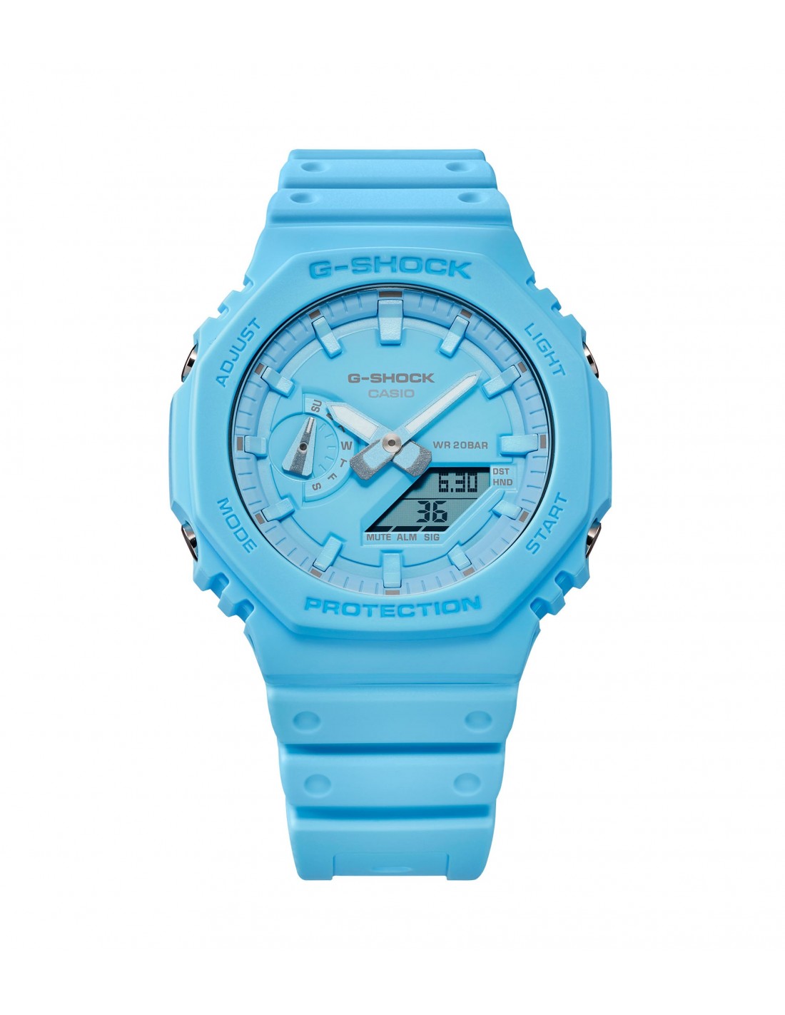 Il colore celeste aggiunge un tocco distintivo a questo robusto segnatempo.