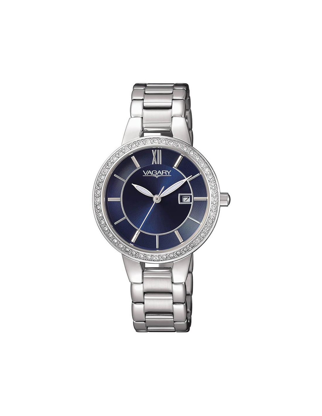 Descrizione Prodotto: L'Orologio Vagary Donna 115th IU3-312-71 Blu è un accessorio elegante e funzionale dal design classico con un tocco di moderna brillantezza. Il quadrante di colore blu notte è incorniciato da una ghiera ornata di cristalli scintillanti, dando al prodotto un aspetto elegante e raffinato. Le lancette argentate e i numeri romani offrono una lettura immediata, oltre ad una esteti