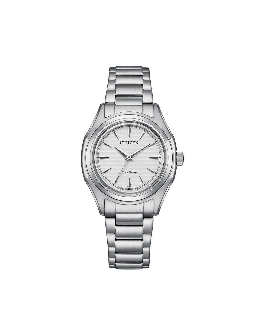 Lasciati conquistare dall'eleganza e dalla precisione di questo splendido orologio Citizen FE2110-81A, perfetto per ogni occasione. Il quadrante bianco con indici e lancette luminescenti è protetto da un vetro zaffiro antigraffio, mentre la cassa e il bracciale in acciaio inossidabile conferiscono un tocco di raffinatezza al tuo look.