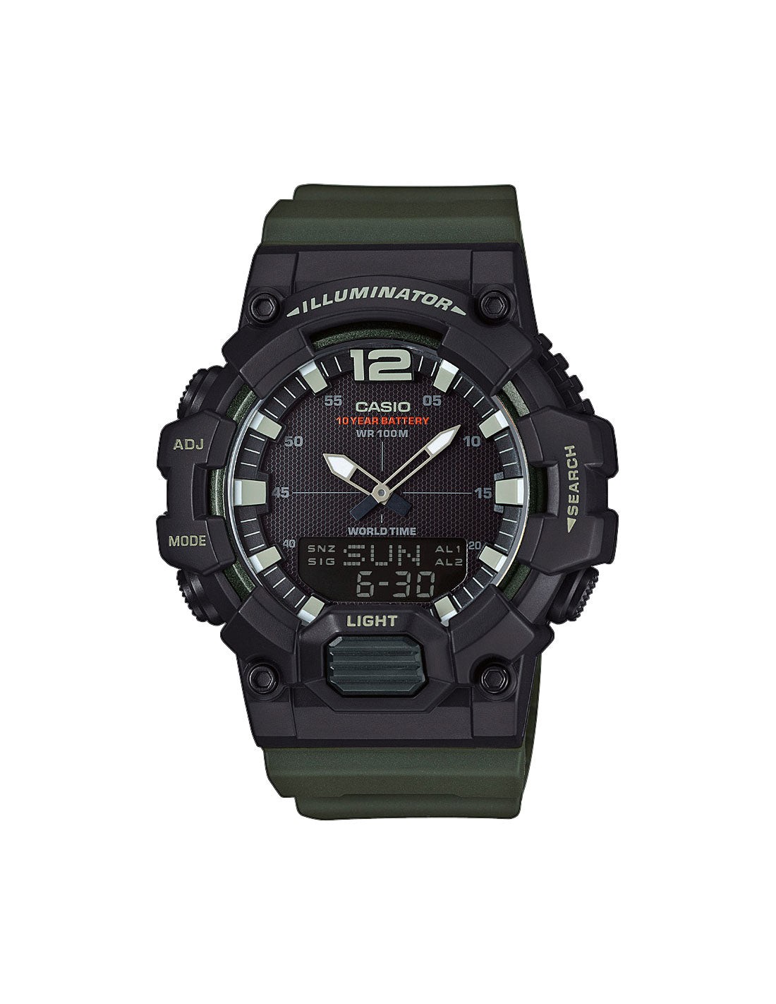 Porta sempre con te l'Orologio Casio Illuminator Sport Green Analogico e Digitale e vivi al massimo le tue avventure sportive. Realizzato in Resina Poliuretanica idrorepellente e resistente agli urti, è perfetto per affrontare tutte le tue sfide! Grazie alle lancette luminescenti al buio, puoi visualizzare l'orario sia in modalità analogica che digitale. Inoltre, è dotato di led che ti consente d
